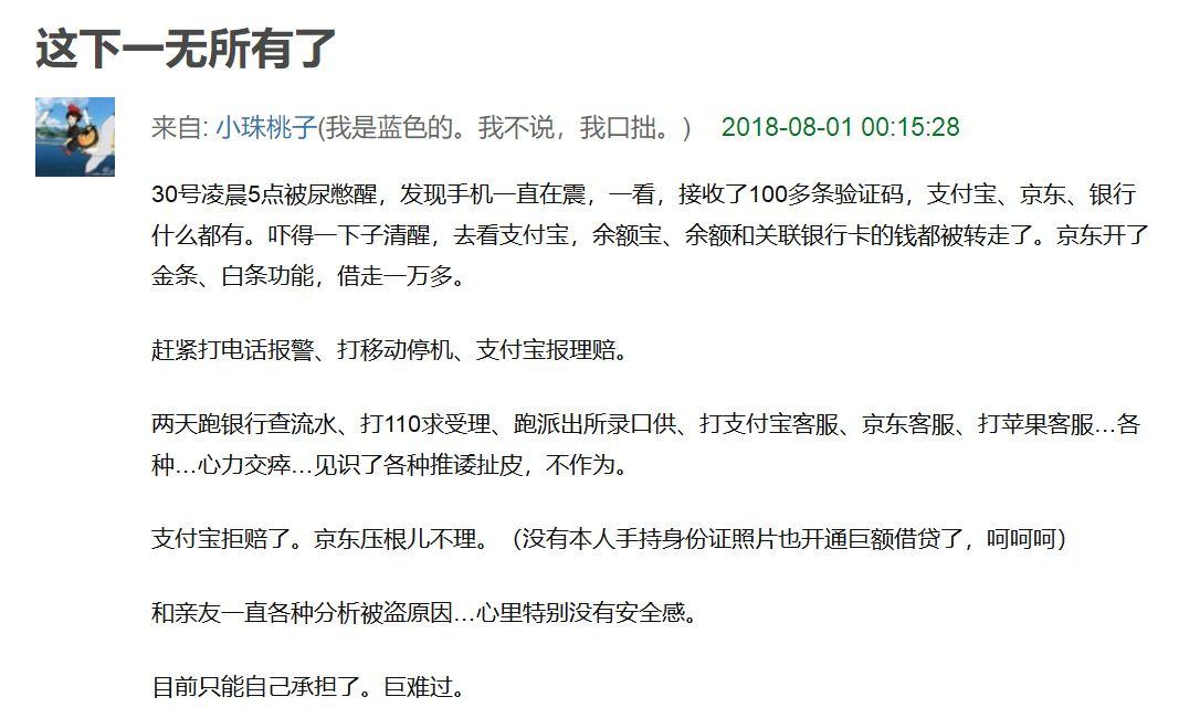 除了跨国作案,电信诈骗者的技术也在不断升级,有时真让我们猝不及防。前段时间有一个帖子火了,帖主“小珠桃子”称,一觉醒来发现收到上百条短信,被各种网站划走上万块钱,