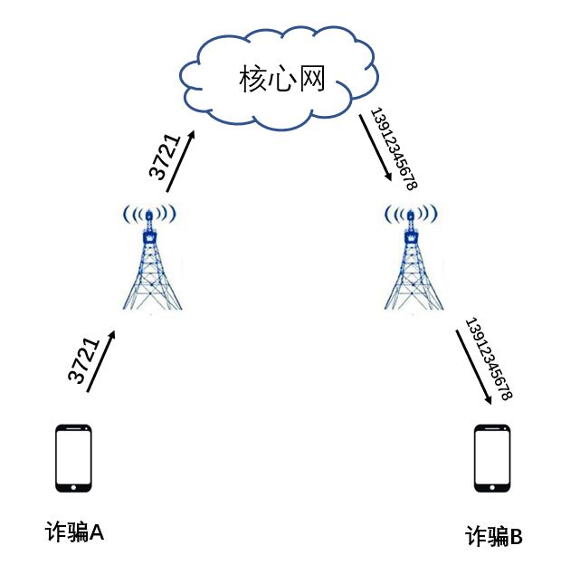 于是,骗子把“诈骗A”手机SIM卡的IMSI码伪造成3721,然后给“诈骗B”手机拨了个电话,1秒钟后挂断。