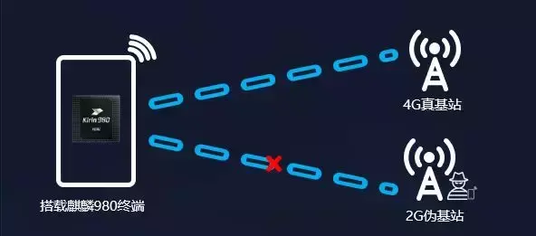 其次,当手机需要驻留在高风险2G网络的情况下,麒麟芯片通过防伪基站技术识别2G伪基站,屏蔽非正常基站的连接,依然能有效规避短信诈骗的风险。