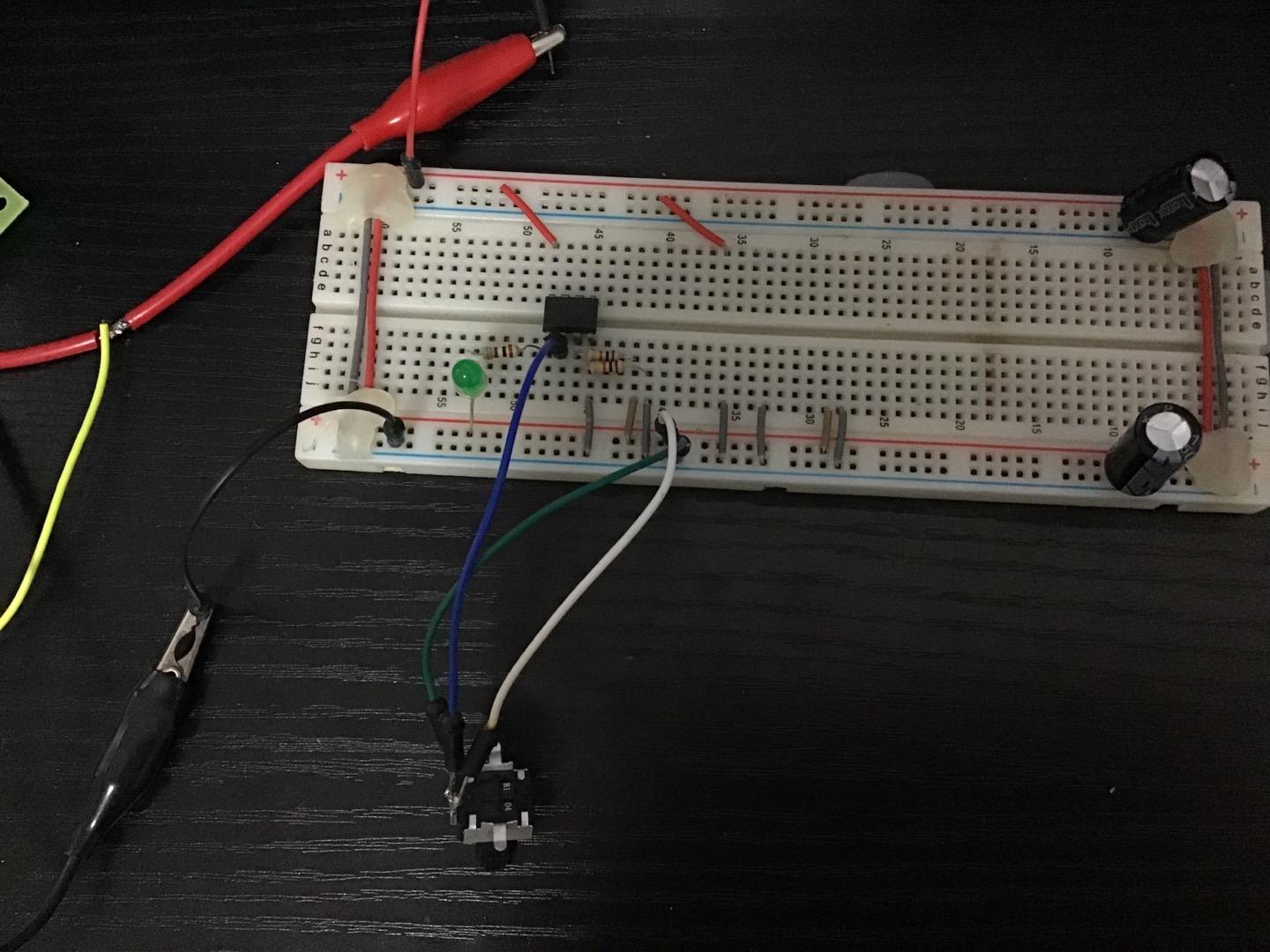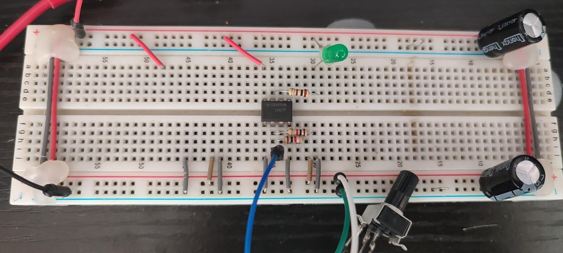 来回旋转可调电阻,可以反复点亮或熄灭 LED。