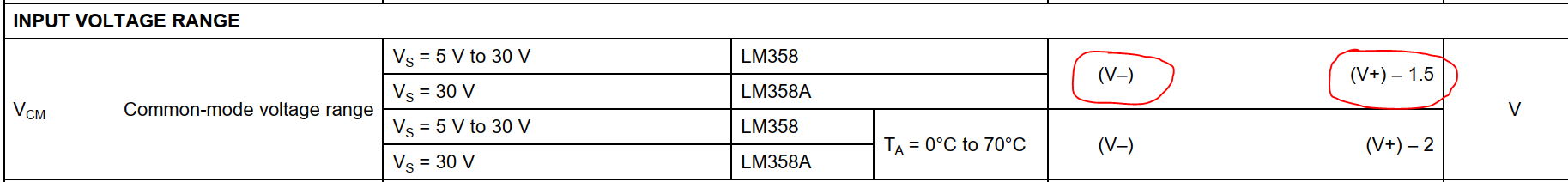LM358 数据手册中的共模电压范围显示,其输出的最大电压为正电源电压减去 1.5: