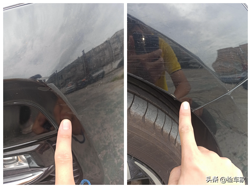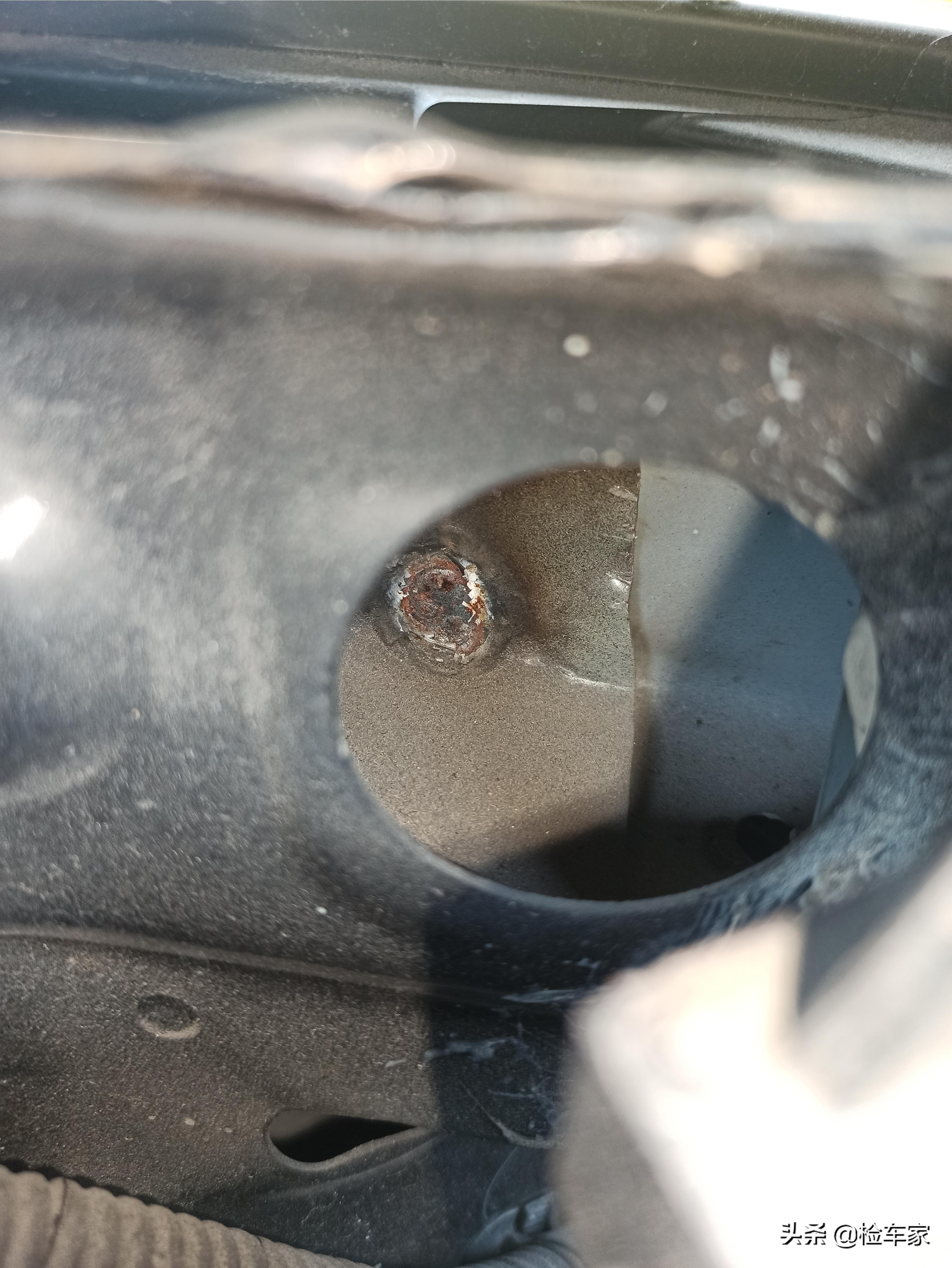 不过在对比两边叶子板梁的时候,靓仔发现右前叶子板的固定螺丝是拆过的,仔细查看叶子板的做工,细节的处理比左边要差很多,由此靓仔判断右前叶子板也是更换过的,刚才测量右前叶子板的漆面厚度并没有发现这个问题,可能是更换新的叶子板喷漆之后,数据与原厂比较接近的原因。