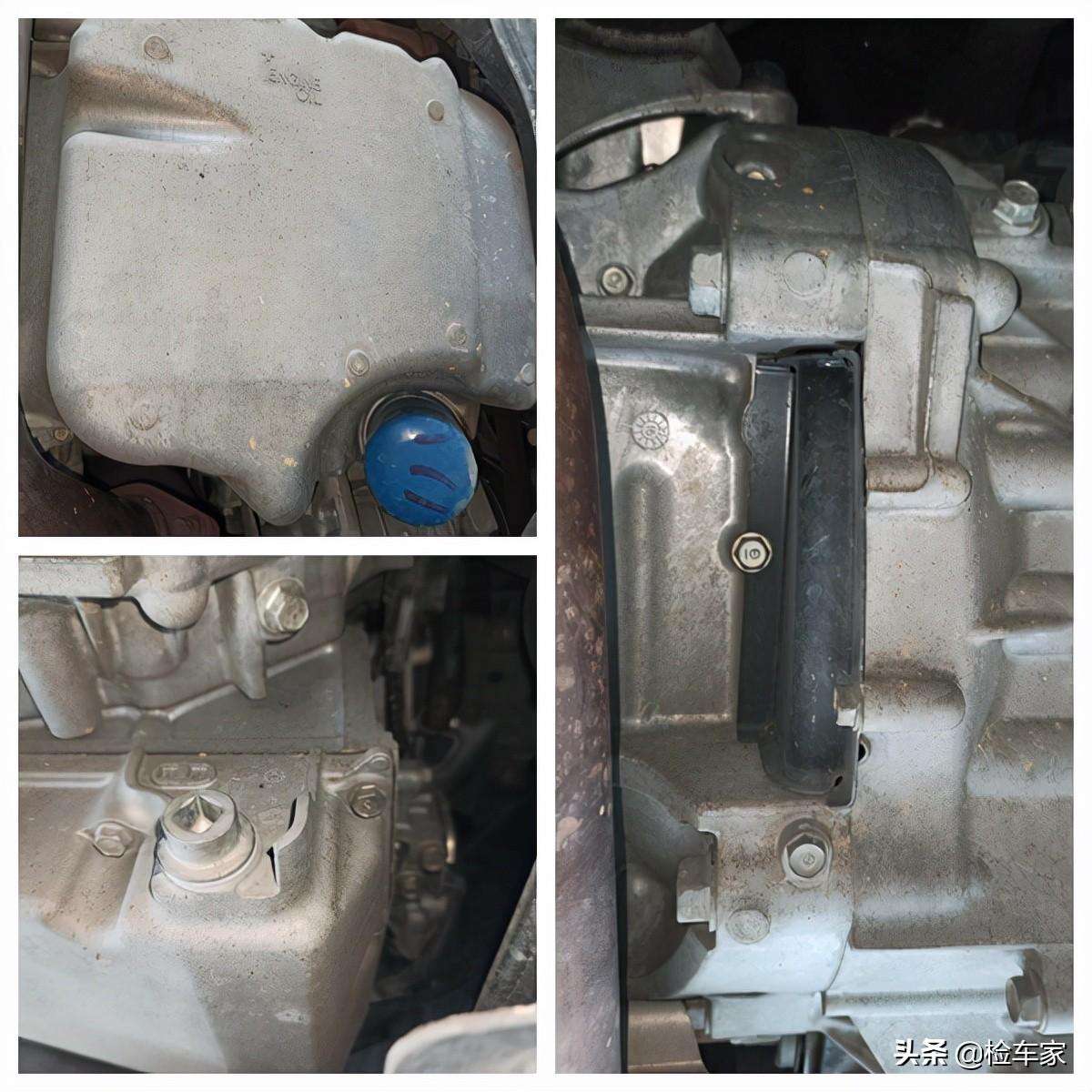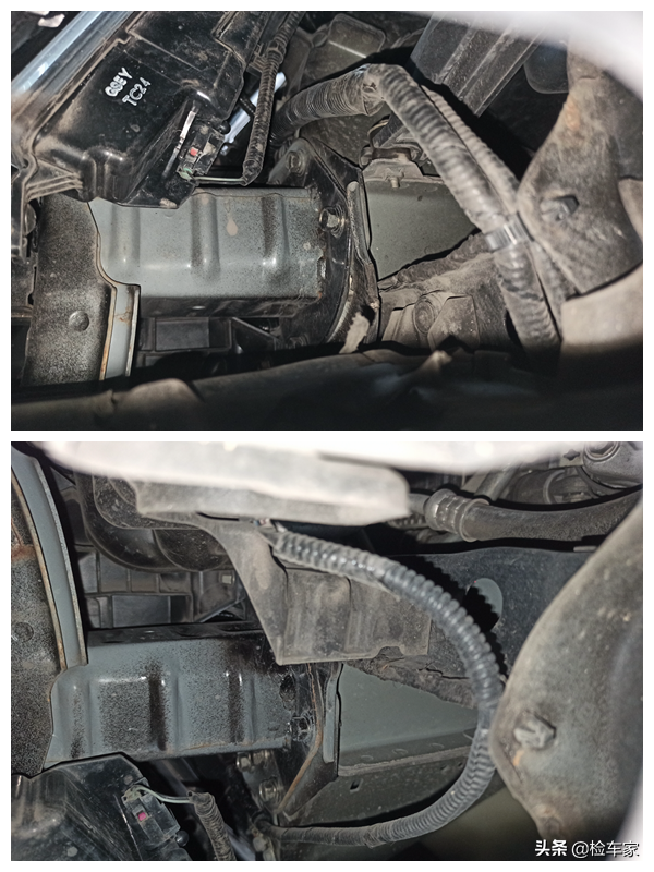 跟上部一样,发动机变速箱底部一颗螺丝未动,发变连接处和两个油底壳也没有漏油的现象。