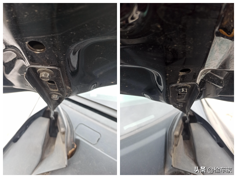 还有左后门、右前门、左侧车顶几个地方喷漆修复,右后门小钣金,整个外观保存的还行,ABC柱没有伤。目前只感觉机盖有点儿异常,我们就来打开发动机舱。