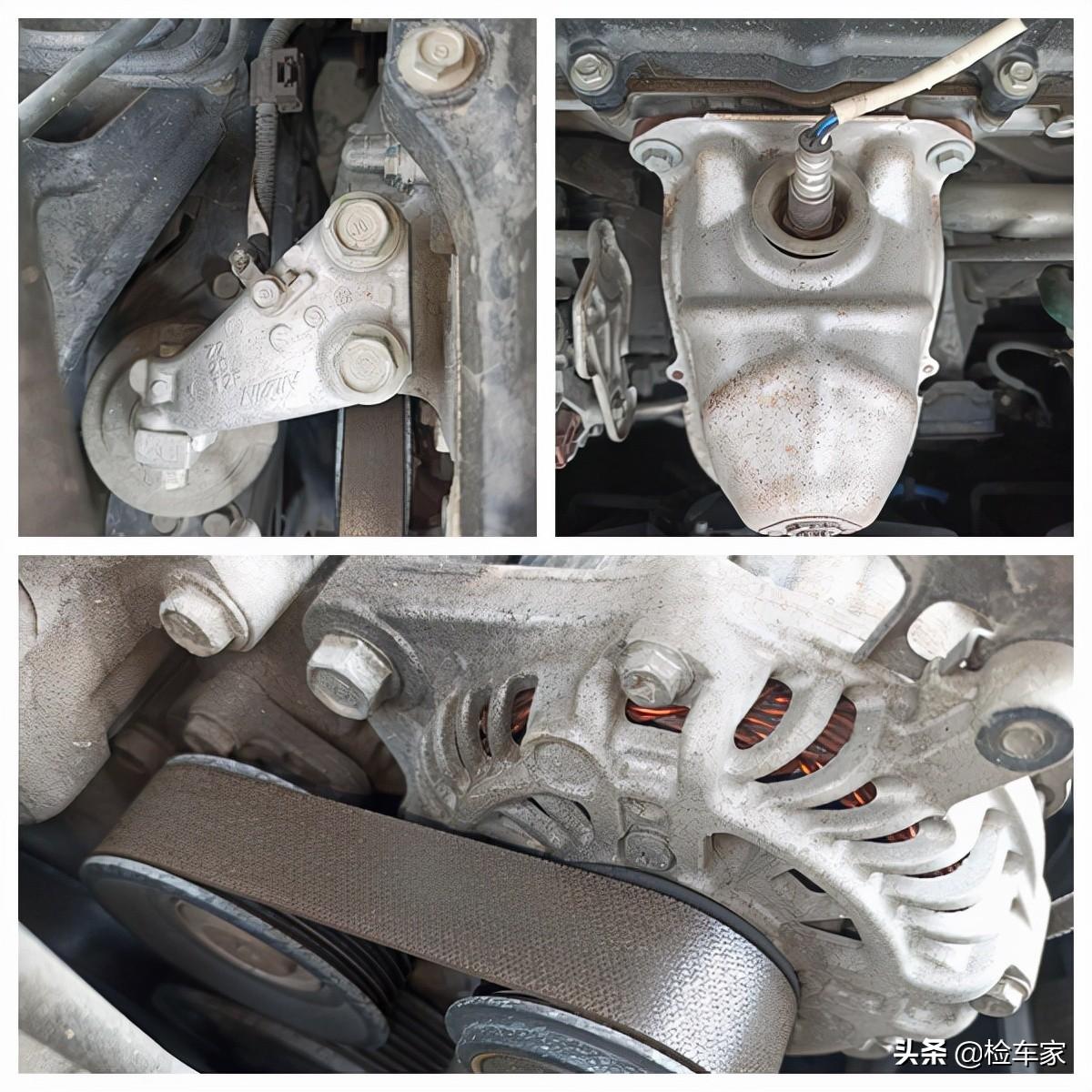 接下来检查发动机本体,看了棘爪、气门室盖、排气管以及发电机涨紧轮等附件,都没有拆卸维修的痕迹。开玩笑呢?才开了五年5万公里,这可是本田!没有外力作用的话,就算跑网约车也不会出现太大的问题。