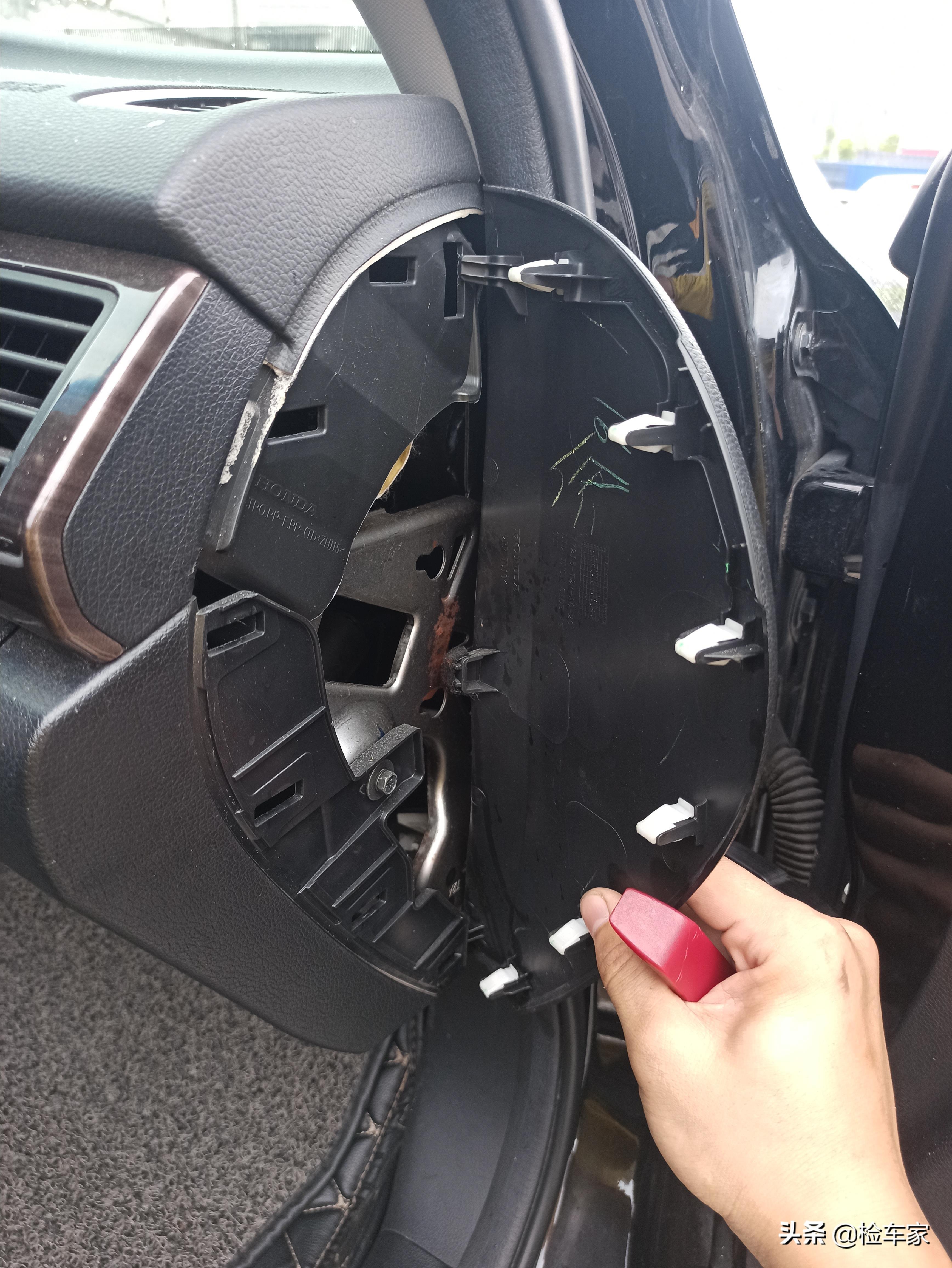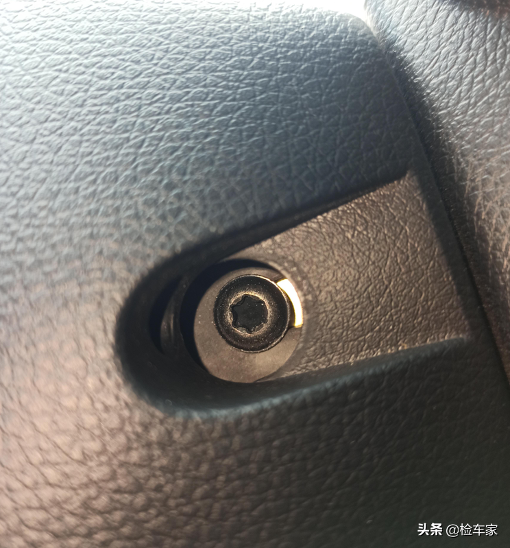 因为车头前方有事故,靓仔担心气囊有弹出更换,所以先来检查这里。看了主气囊的固定螺丝原封未动,说明气囊没事,还好还好。
