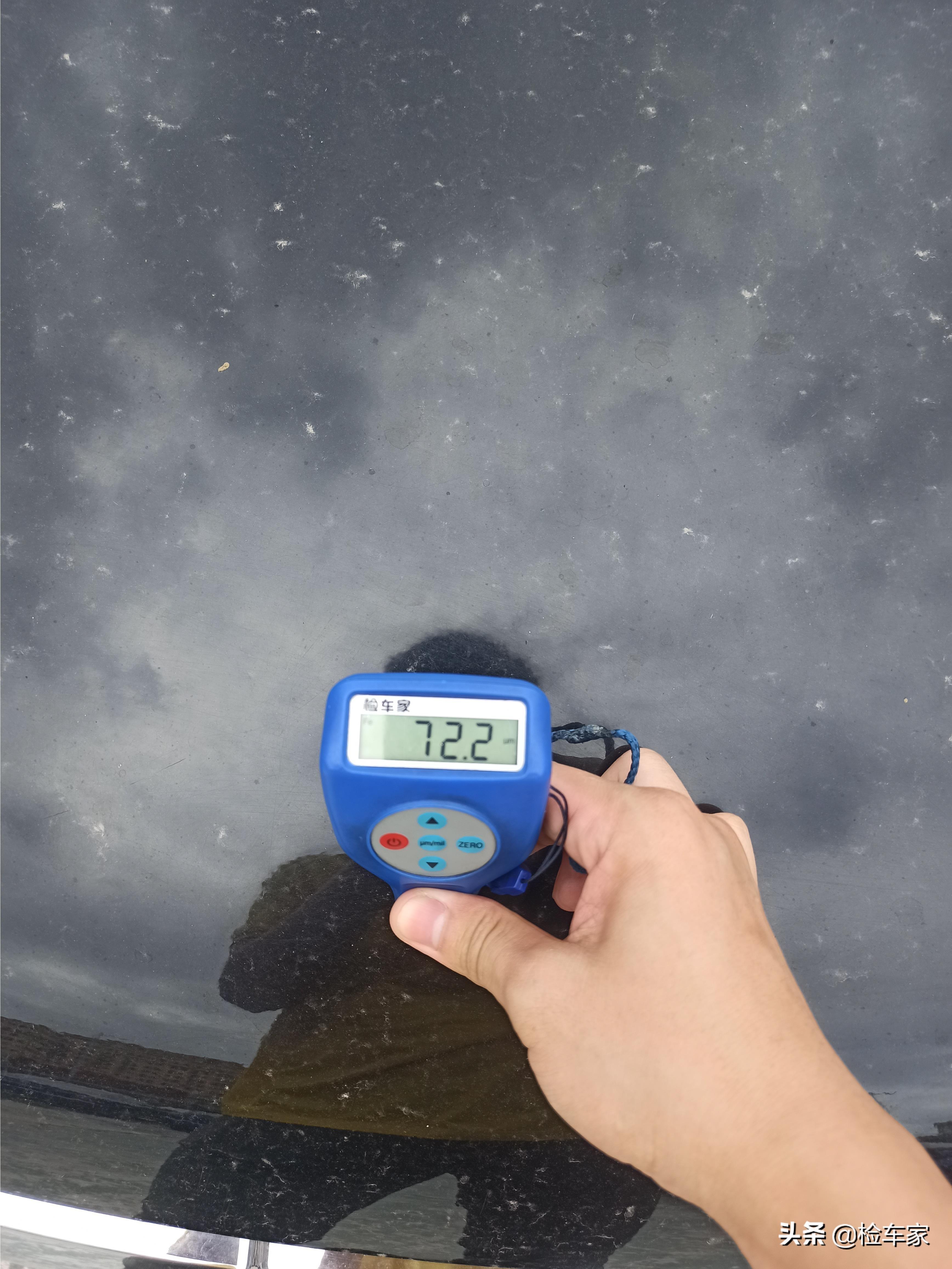这是前机盖测出来的漆面厚度,虽说日系车的车漆薄,但也不至于低到70μm,正常怎么也要100μm,而且漆面平整度较差,靓仔有理由怀疑机盖是后更换的,一会儿检查发动机舱的时候看看里面的情况。