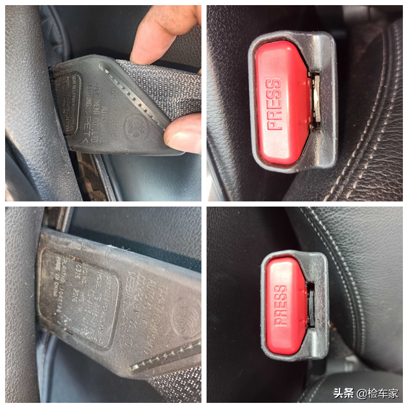 前排的安全带也没有拆下来过,制造日期符合原厂,说明安全带没有锁死过,也间接说明气囊没有触发,因为气囊弹出跟安全带锁死这两个是一起工作的。又看了金属卡扣没有生锈的痕迹,卡槽内没有泥沙残存,这是看有没有泡水。