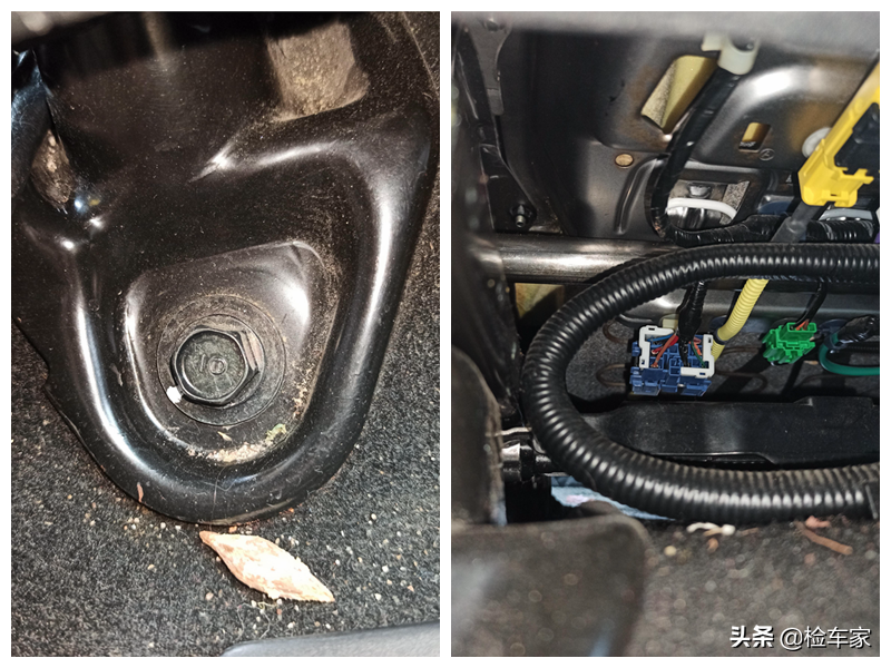 再看了座椅固定螺丝以及底部骨架,螺丝无拆卸,骨架无生锈,线束插头无泥沙残留。