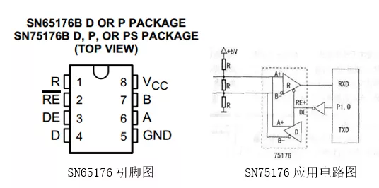 以SN65176和SN75176为例,该SN65176B和SN75176B差分总线收发器是为多结点总线的双向数据通信的集成电路而设计的。该SN65176B和SN75176B结合了三态差分线路驱动器和一个差分输入线接收器,两者都工作在5V单电源。驱动器和接收器分别具有高电平和低电平使能,连接在一起作为一个方向控制的外部功能。