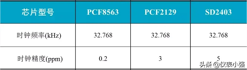 RTC的主要职责就是提供准确的时间基准,计时不准的RTC毫无价值可言。目前部分MCU在片内已集成RTC,实际测试中在电池供电6小时环境下片内RTC的偏差在1-2分钟。因此,若对实时时钟有较高的要求则需优先考虑外扩RTC,同时要求时钟精度更高的RTC,比如PCF8563,表1所示是不同RTC的时钟精度对比。