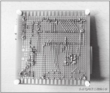 首先安装电源插座、串口插座,然后按照它们的位置定位安装电源和MAX232插座,再定位安装LCD插座、单片机插座和PCF8563插座。最后安装每个插座周边的元件,焊接连线。尽管洞洞板接线比较自由,也要尽量做到安全、合理、方便、美观。焊好元器件的电路板背面如图11.3所示。实际接线也可按照自己的安排布局,就近选择,也可以修改现有原理图的引脚连接,但程序就得作相应修改,总的功能不会改变。本图使用的LCD1602液晶的数据线采用8线接法,其实4线接法也可以。不过改变接法后,液晶的驱动程序和初始化要作相应修改,我在程序中将两种方法都列了出来,可以根据需要开启其中一种,注释掉另一种程序。初学者注意:LCD1602使用4线接法时,多余的4个引脚不可作液晶的控制线,但可以用作程序控制的输出线。