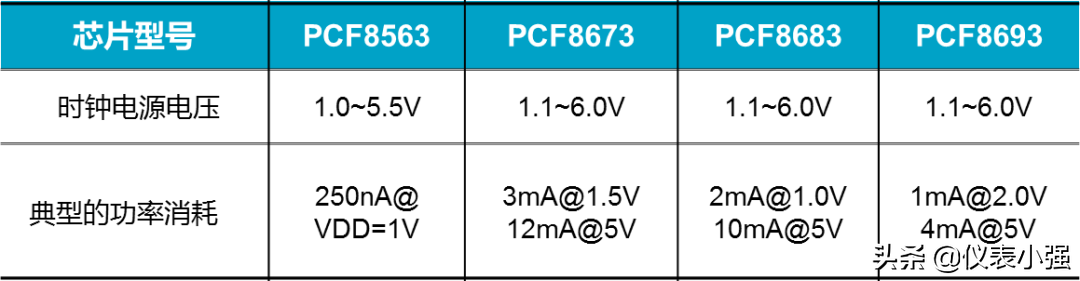 选择低功耗的RTC,比如PCF8563,表2所示是不同RTC的功率消耗对比:表2 常见RTC功率消耗对比