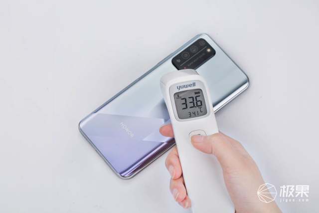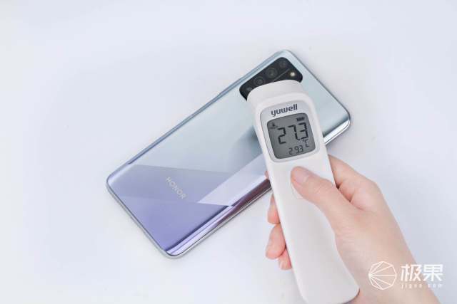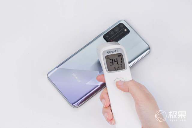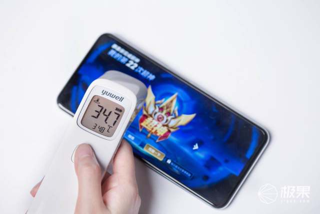 在我使用荣耀X10玩游戏1小时候,我使用测温枪做了温度测试。最热的地方,也只有34.7℃,这还是在屏幕位置。而在我们经常握持的手机背部,温度最高34.1℃,摄像头旁位置仅为27.3℃。