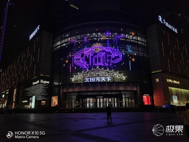 夜景方面,荣耀X10表现同样出色。在拍摄过程中我们将相机切换到夜景模式,在按下拍照键后会有短暂的拍照时间,在此过程中我们尽量保持手机的稳定性,最终我们会收获一张出色的夜景照片。通过这组夜景照片,我们不难看出,不论是在夜间户外大光比环境下还是夜间室内复杂的灯光环境下,荣耀X10的夜景拍摄能力很是令人惊艳。它的高光控制的很好,没有出现高光的溢出,同时暗部细节表现的同样很好,没有涂抹感,细节感不错。
