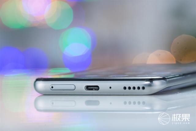 底部是手机的SIM卡槽、Type-C接口以及外放孔。