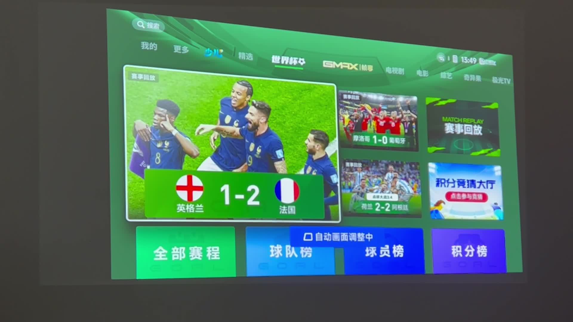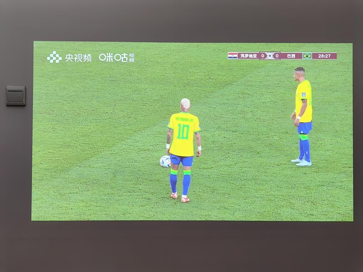 在白天正午十分显示效果肯定是不如暗光环境下的但是也非常的清楚,用投影仪看球是真的爽,可惜我预测的冠军巴西队点球输了。