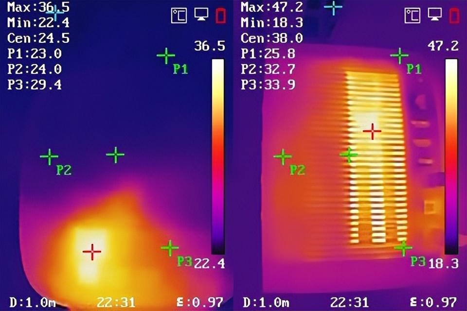 而极米H3S的最高温度为背面的47.2℃,顶部最高36.5℃,明显要高于极米H5。