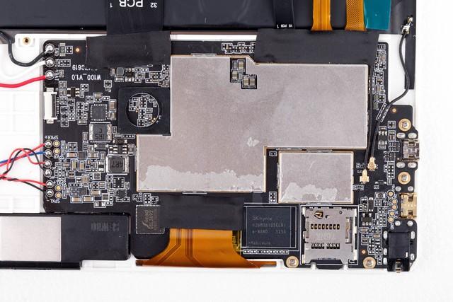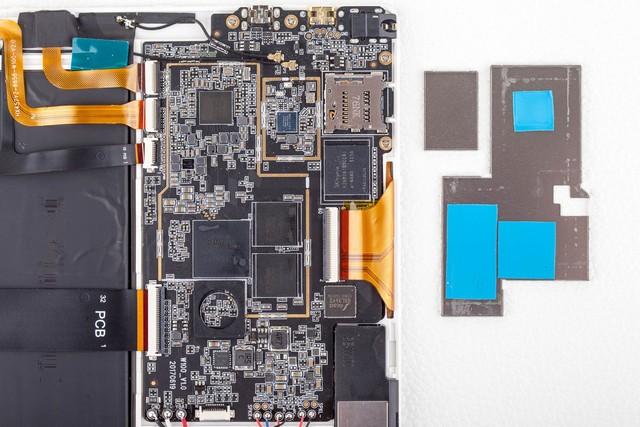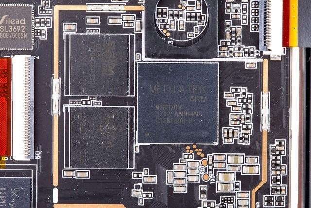 台电T10平板的核心:来自联发科的MT8176六核处理器,其拥有2个2.1GHz的A72核心和4个1.7GHz的A53核心,并且集成了GX6250图形处理器。处理器旁边则是两片共4GB的LPDDR3内存。