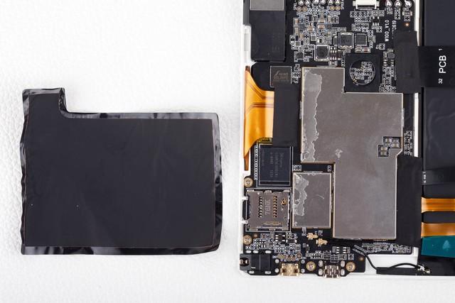 T10的两个金属屏蔽罩都能移除,其中大屏蔽罩内是CPU+内存+电源管理芯片,屏蔽罩内对应芯片位置还配有导热硅胶片进行传热;小屏蔽罩内则是五合一通信芯片。