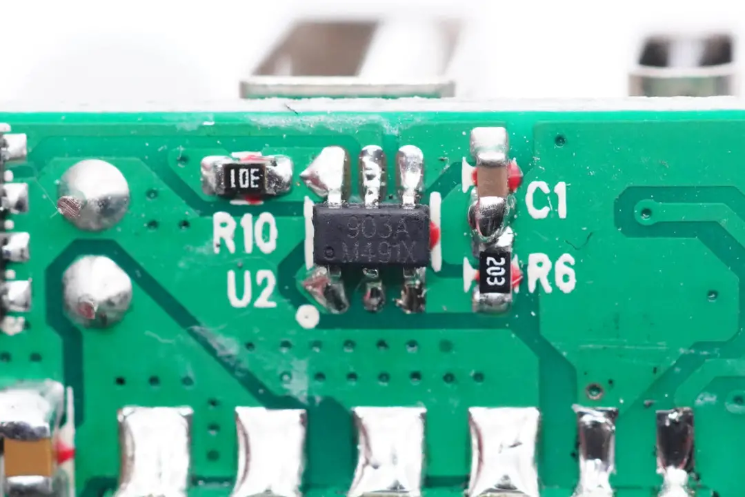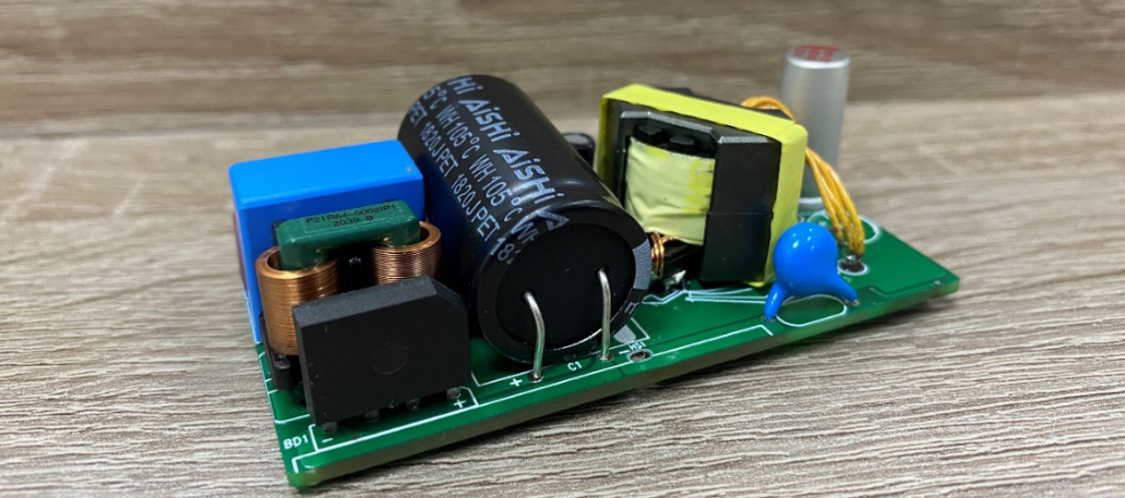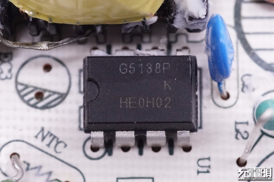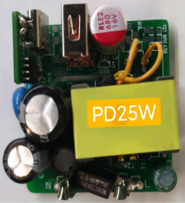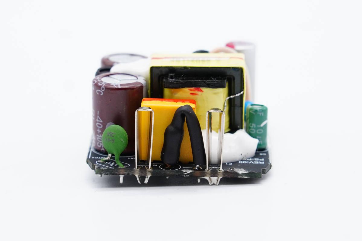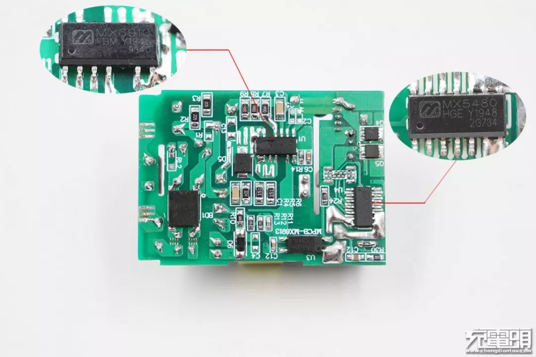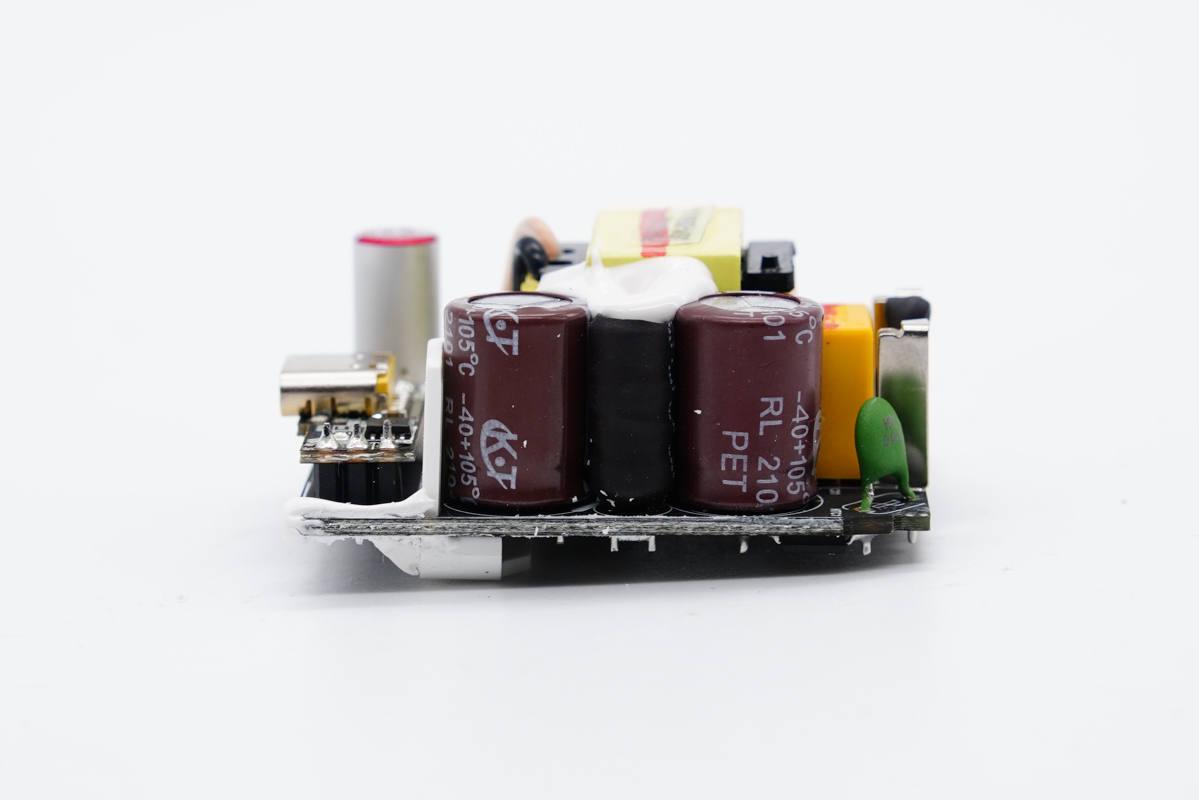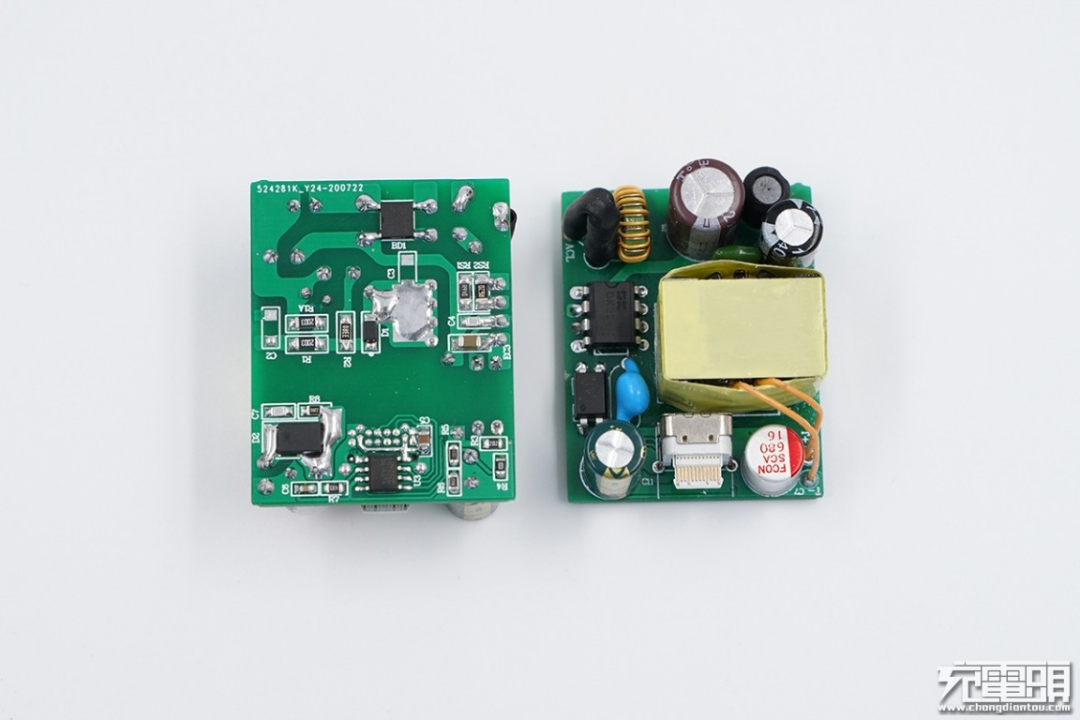 PCB板另一侧设有主控芯片供电电容、变压器和Y电容。