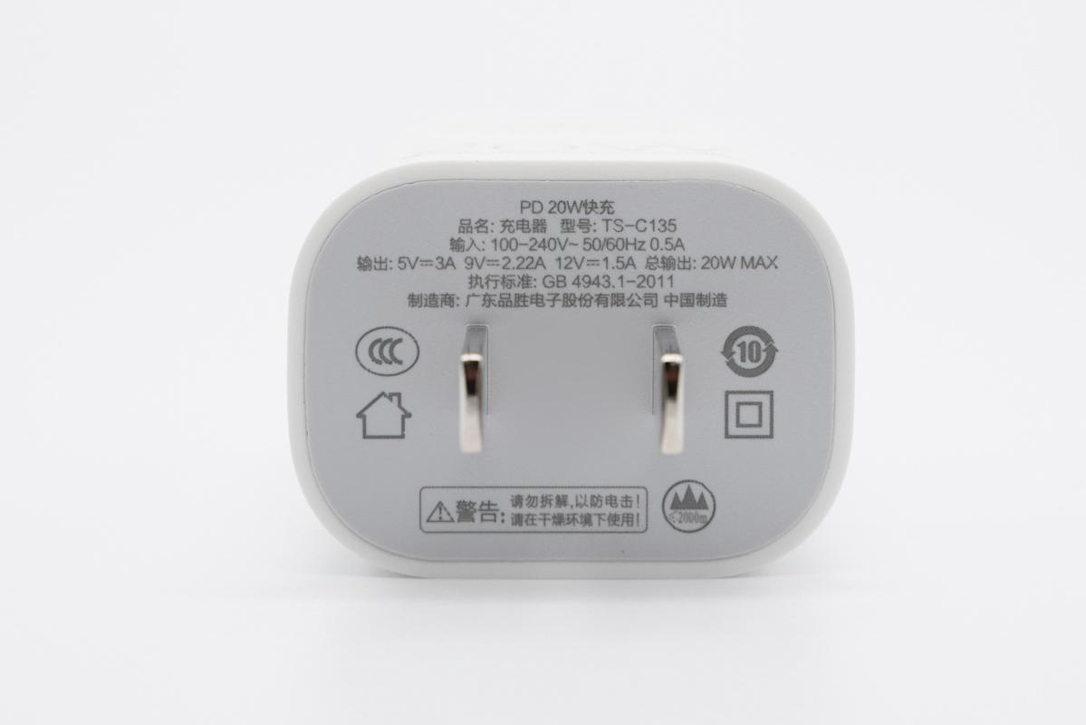 品胜这款20W充电器采用直板造型设计,腰身亮面,两侧弧面过渡,使用不硌手。