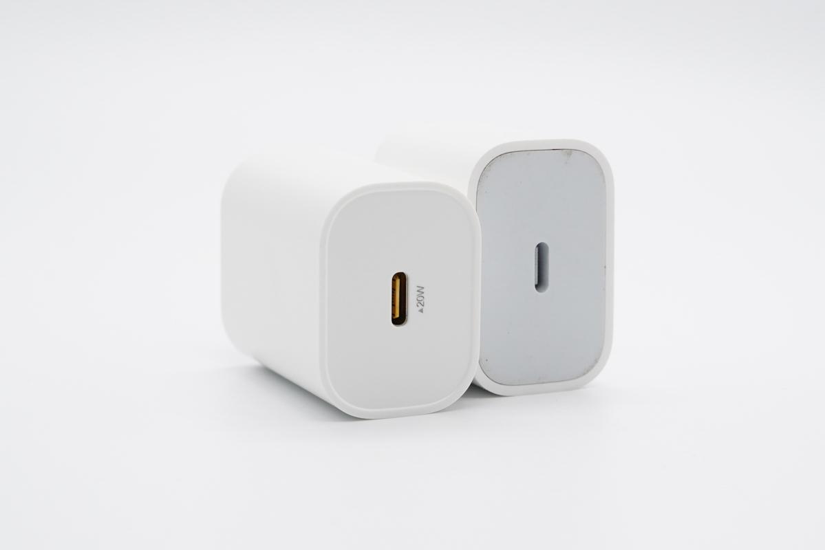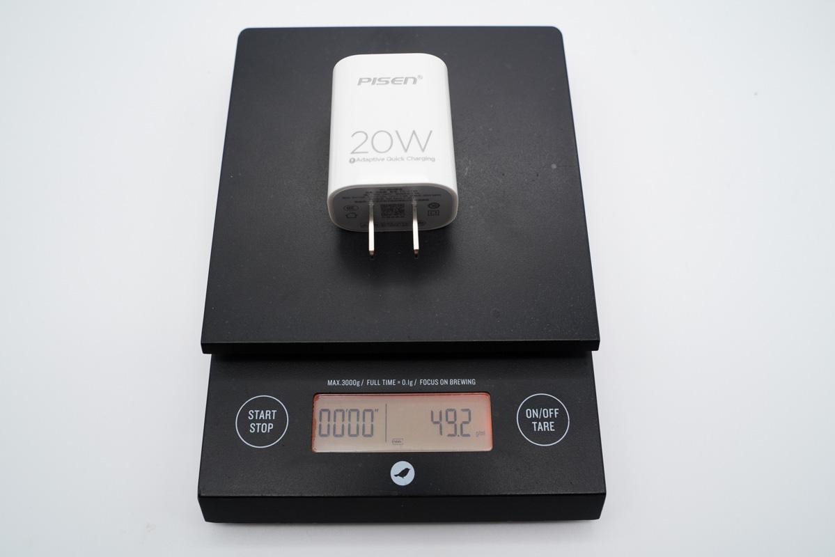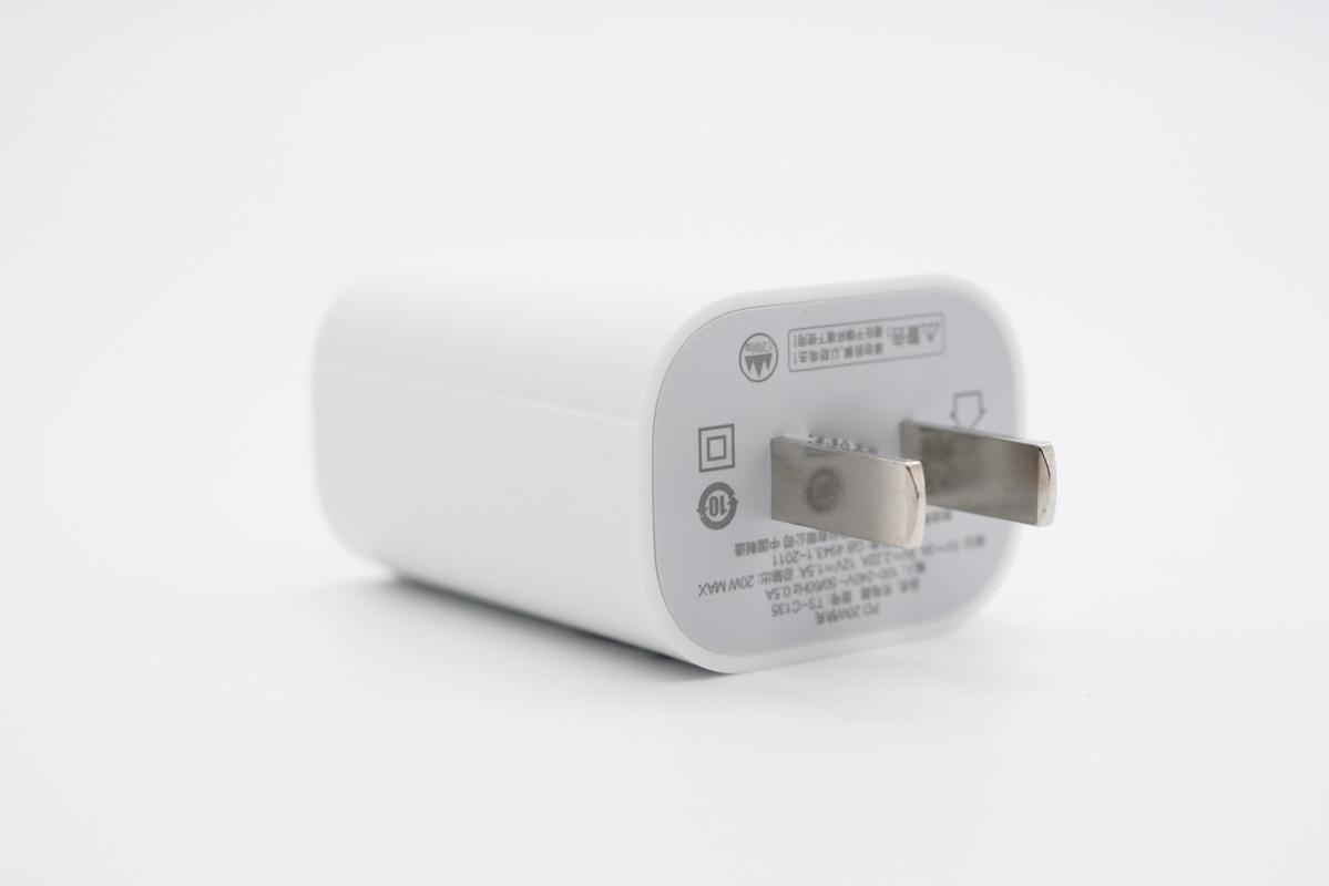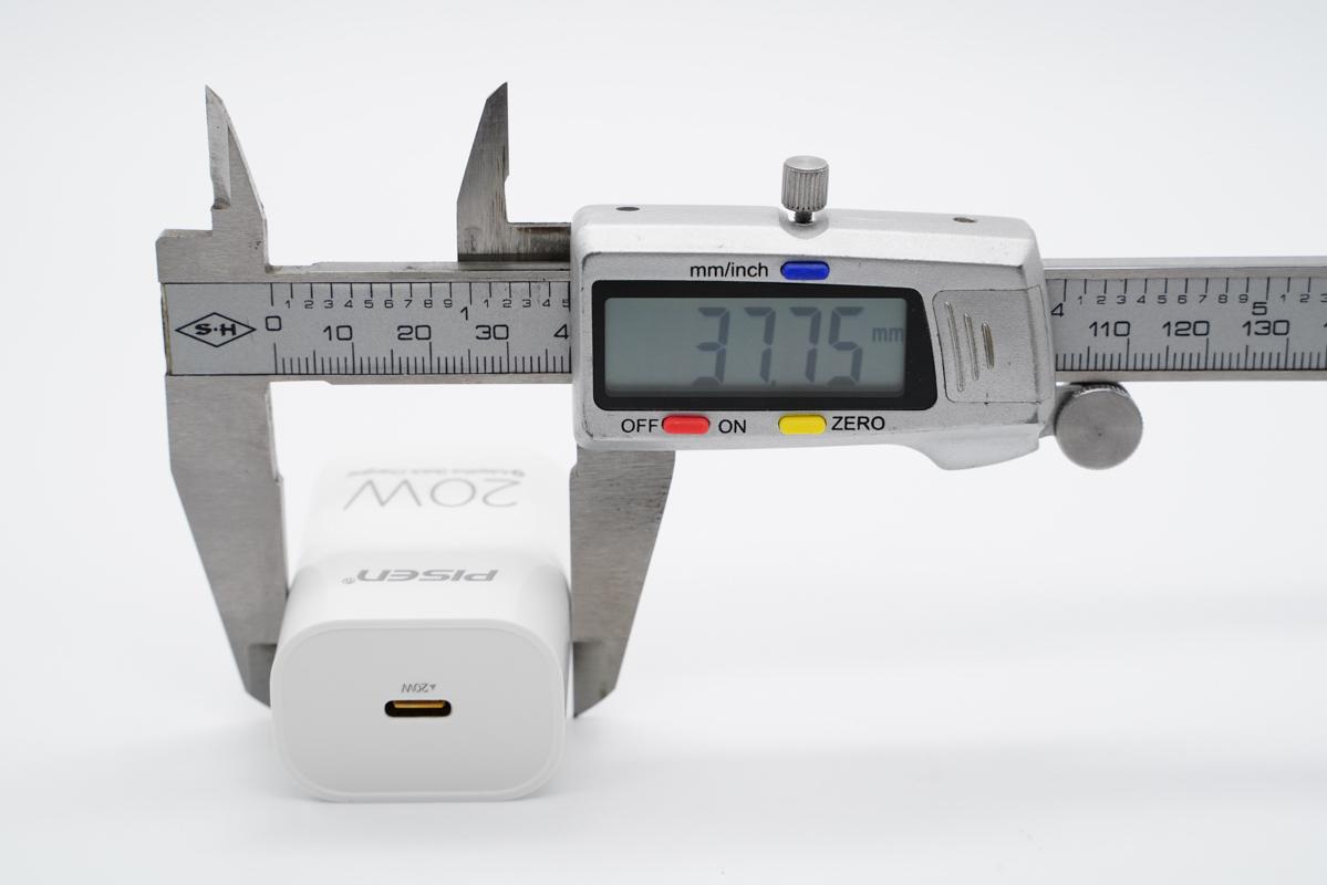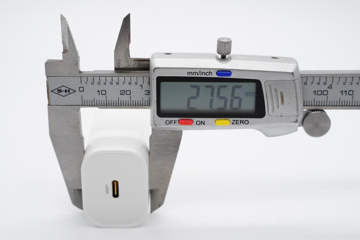 和苹果20W充电器直观对比,品胜这款稍长也稍细一些。