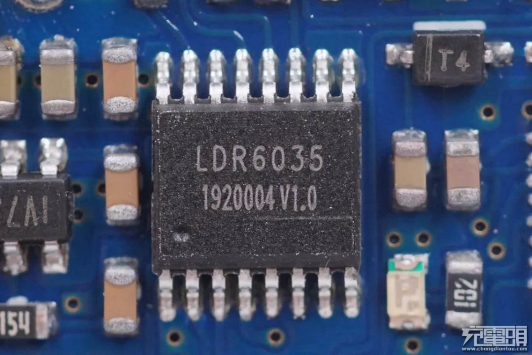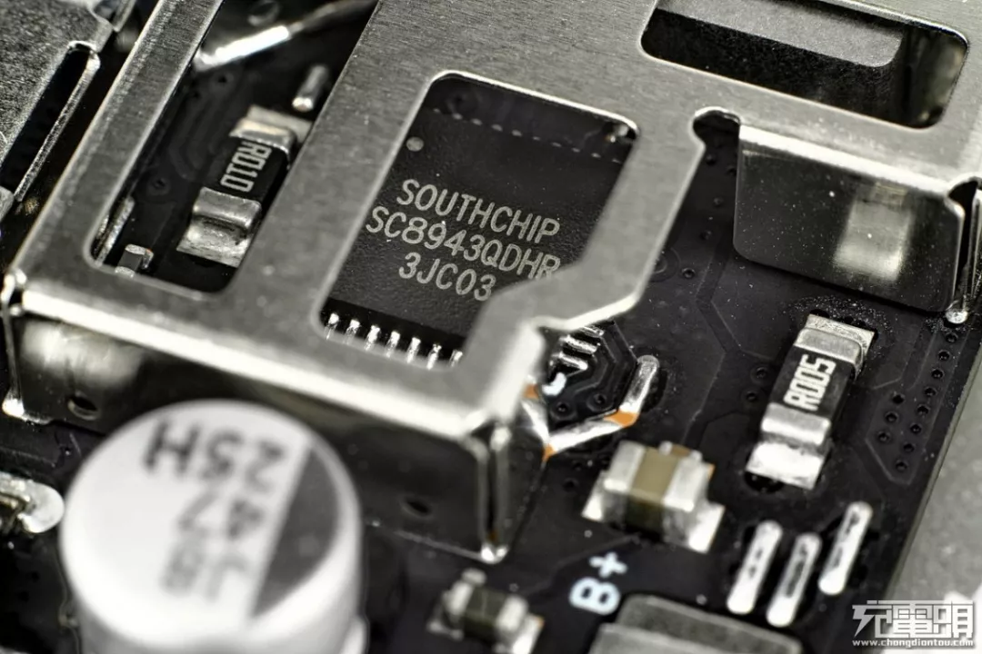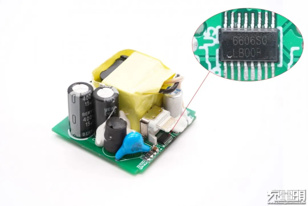 充电头网通过拆解发现,充电器内部设计布局基本保持不变,新快充协议芯片是天德钰的JD6606S,该芯片通过了USB PD 3.0认证,是一颗高性能和高兼容性的快充协议芯片,支持18W-60W输出,满足主流PD适配器输出。