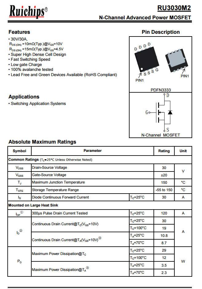 输出VBUS开关采用锐骏RU3030M2 MOS,NMOS,耐压30V。