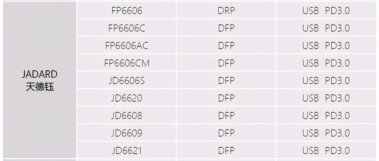 天德钰科技在快充协议芯片已深耕多年,推出了USB-IF协会PD3.0/PPS认证的快充协议芯片JD6621(TID:3543)和JD6606S(TID:3768),为苹果20W PD快充产品的开发提供兼容性保证。同时,天德钰还拥有符合高通最新QC5.0协议的芯片,为快充充电器、快充移动电源及快充车充应用提供芯片支持,实现多口不同设计。