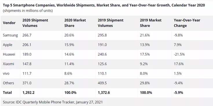 根据权威市调机构IDC发布的最新数据显示,2020年全球智能手机出货量达12.9亿部。而随着三星、苹果、华为、小米等手机厂商陆续实施不标配充电器的政策,整个快充市场变得异常活跃。据测算,自iPhone 12系列取消标配充电器以来,仅这一款机型就给市场增加了上亿台USB PD快充设备,并让数十亿规模的PD快充配件的市场得到释放。
