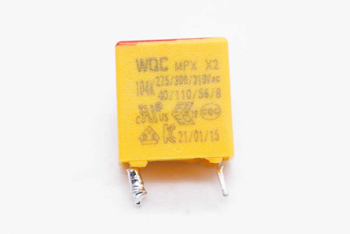 输入端一览,保险丝外套绝缘管保护,旁边有绿色NTC浪涌抑制电阻和黄色X电容。