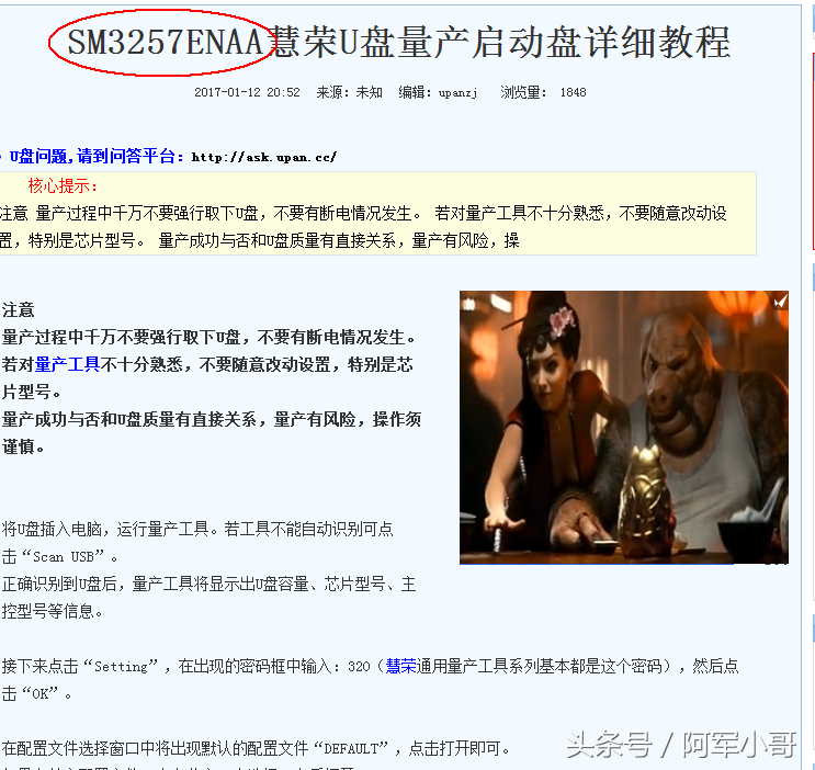 3.根据对应的型号,上网搜索U盘量产,打开U盘的网站后,搜索此型号量产工具,如图我的U盘型号找到的工具网站