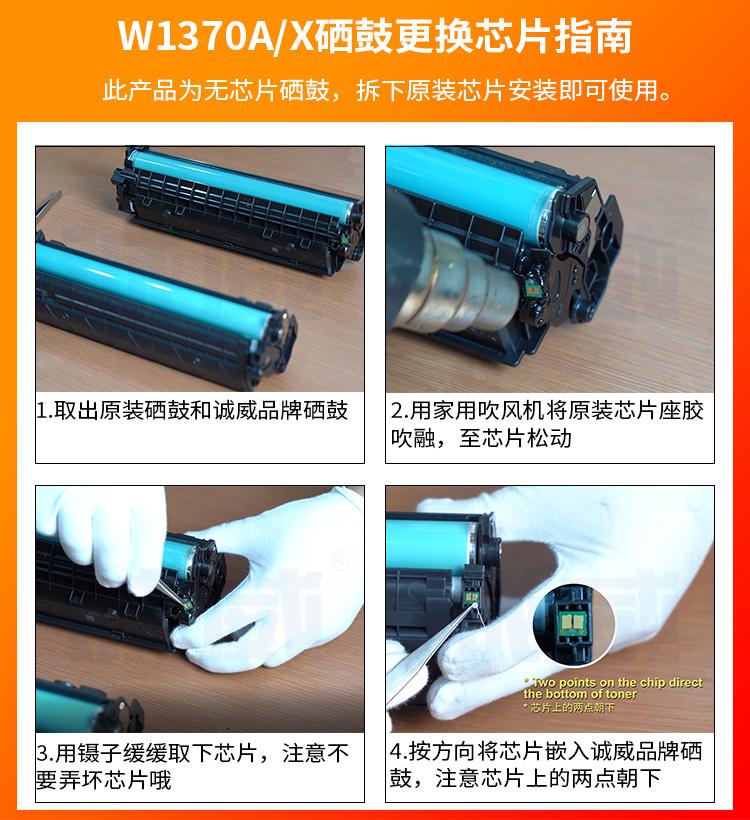 有代用的芯片的,加粉后直接把旧芯片拆下来更换就可以方便打印机识别。有的硒鼓因为上市时间短,暂时还没有代用芯片的,更换代用硒鼓后可能还需要把原装旧芯片上面的芯片拆下来使用。