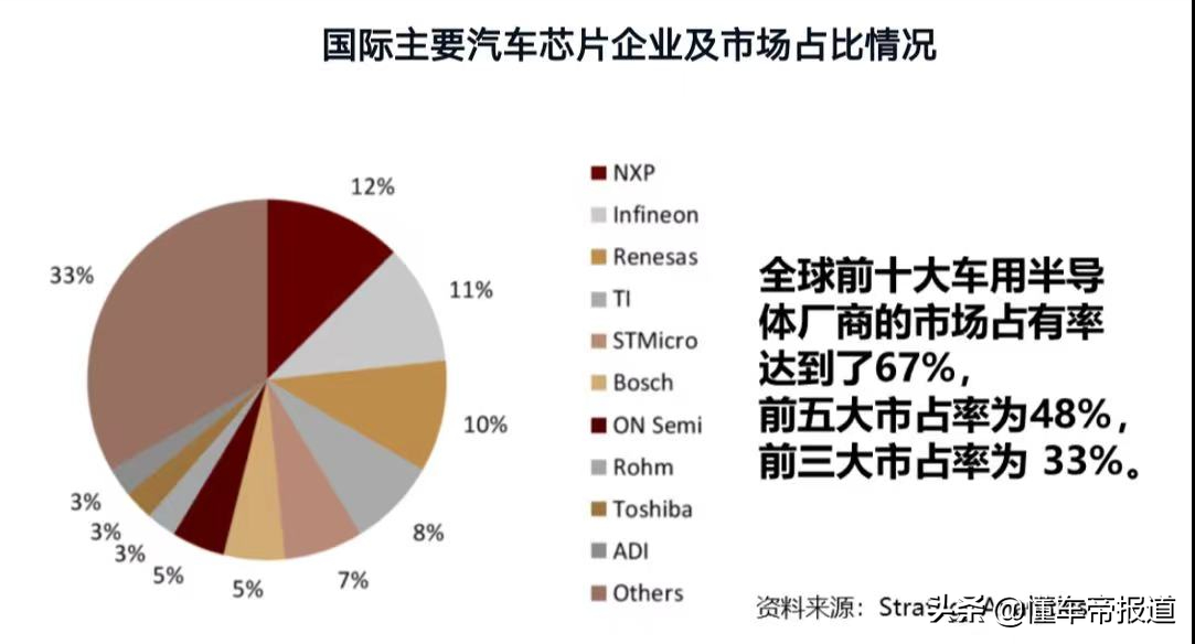 过去,全球汽车芯片供给状况主要呈现两大特点,其一,芯片产品被恩智浦、英飞凌、瑞萨电子、意法半导体、德州仪器、博世等头部芯片企业所垄断;其二,“芯片企业-零部件供应商-整车厂商”形成长期稳定的供应关系,后来者很难分到“蛋糕”;第三,发展迭代缓慢。