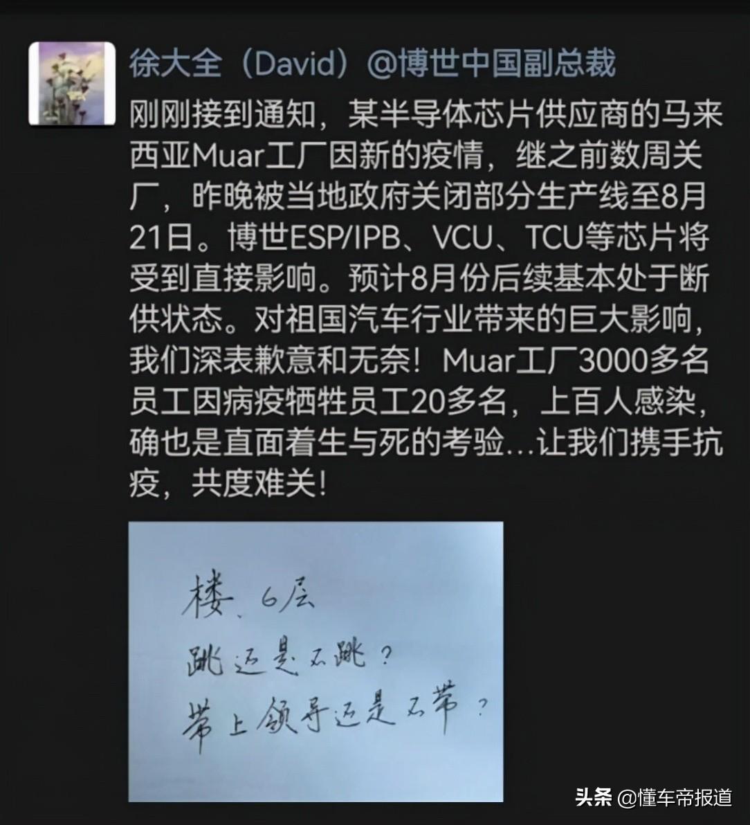 受马来西亚疫情影响,博世芯片断供致多家车企受波及
