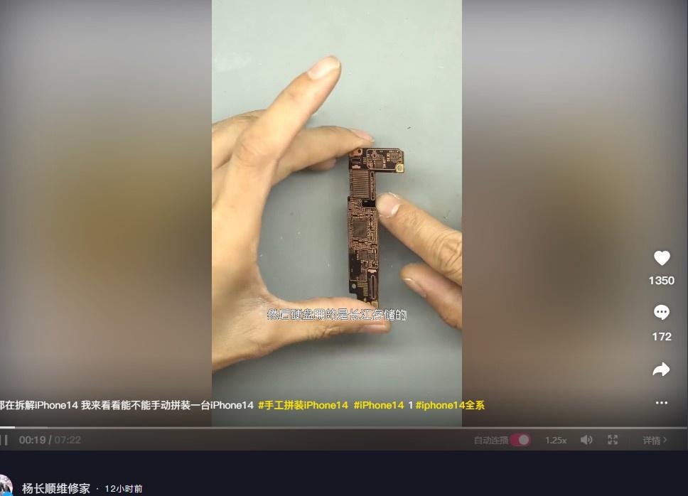 有多位拆机博主证实,苹果 iPhone 14、iPhone 14 Pro 系列的国行机型均采用了长江存储提供的 NAND 闪存。