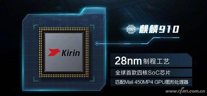 2013年底,华为正式发布了麒麟910,这颗芯片采用了台积电28nm HPM工艺,解决了K3V2的发热和高功耗隐忧,ARM公版Cortex-A9 CPU和Mali-450MP4 GPU的组合,在性能和兼容性方面的表现也不赖。最关键的是,麒麟910首次集成了自家的巴龙710基带,将华为在通信领域的看家本领展现了出来,并也因此成为了全球首颗四核“SoC” 。