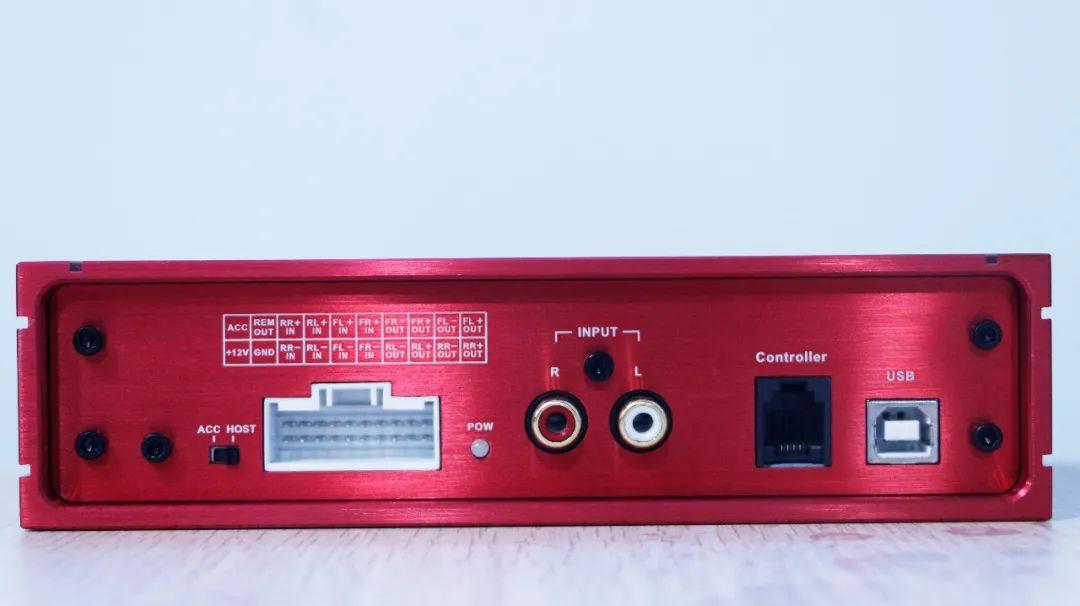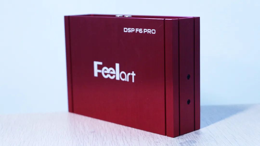 除了小体积以外,DSP F6 PRO整体外观的颜色搭配相当亮眼。鱼肚白的品牌Logo“Feelart”和“DSP F6 PRO”,融入主体的中国红,两种简单但不失韵味的色彩搭配,让人怦然心动。拉丝铝质外壳,两接线端口分别设计在前后两端,前端是6路RCA信号输出接线端口,其余的比如高低电平输入接口等均设计在后端,安装时,直接线束对插,无损换装,不会损坏原车线路、内饰等。