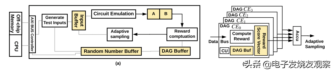 为了减小硬件开销,AdaTest能在可编程硬件上部署电路仿真,从而加速测试输入的回报值评估;其次,通过自动构建辅助电路进行测试输入生成、回报值评估和自适应采样,AdaTest中的每个计算阶段都被流水线化。与传统的逻辑测试相比,AdaTest的测试生成速度提高了两个数量级,与此同时测试样本大小减小了两个数量级,却因此实现了同样或者更高的硬件木马检测率。