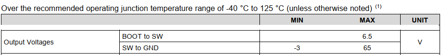 一般 SPEC 上会给出 BOOT to SW 的最大值,如下图是 6.5V,所以一般选 10V/16V 耐压值的电容即可。
