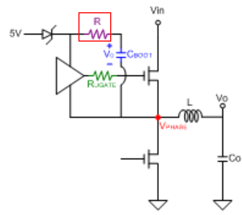 其实在自举电路中,也可以加入电阻,一般叫BOOT电阻。BOOT电容的作用是SW在高电平时,利用电容两端电压不能突变特性,会将BOOT脚电压泵至比SW高的电压,维持高边MOSFET的导通状态。