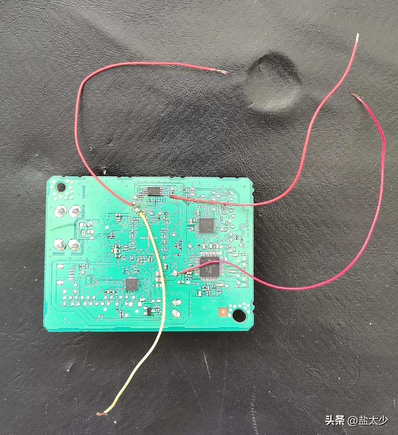 这个EPPROM存储芯片其实就是24C08,1脚接地,2、3、4、7脚也都是连通的,不用再单独引线,剩下的5脚,6脚,8脚分别飞一根线。这样总共飞4根线就能烧录了。