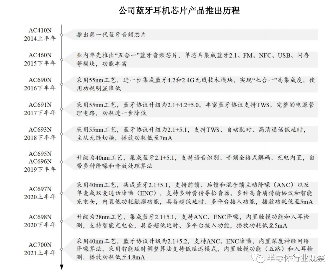 杰理科技也不遑多让,在研发团队攻克下,于2019年推出的蓝牙芯片AC693N,集成了蓝牙5.1技术,实现了主从机无缝切换,播放功耗低至7mA。相较于进口芯片,AC693N除了基本满足了下游客户需求,优势明显的性价也大受市场欢迎,所以一度卖到缺货。