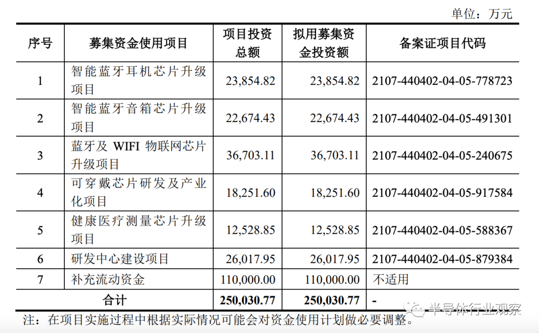 杰理科技上市募集资金使用项目一览
