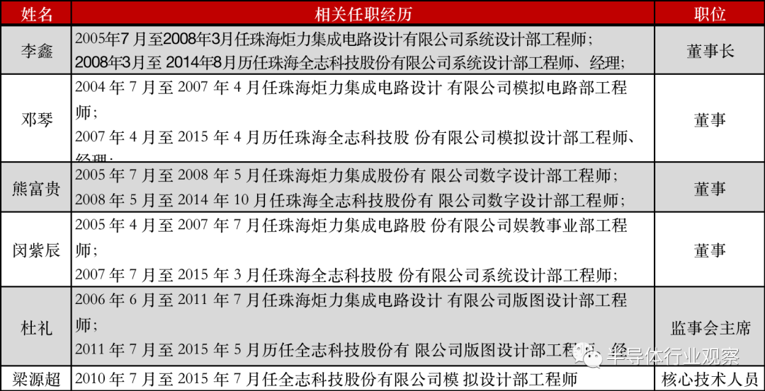英集芯部分高管相关行业背景