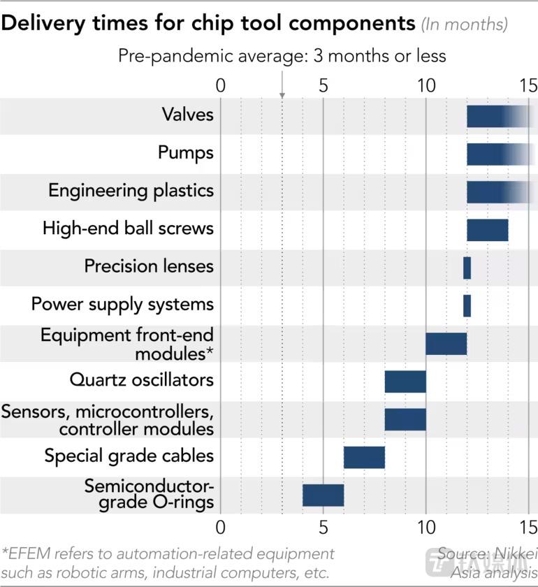 芯片设备零件交付周期,疫情之前是三个月内交付(来源:Nikkei)