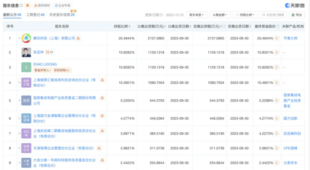 股东阵容堪称豪华,既有国家大基金、地方国资,也有腾讯、美图等互联网企业和真格基金、CPE源峰、红点中国、海松资本等财务投资机构。