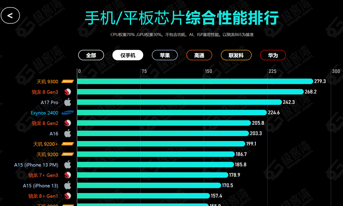 2024手机处理器性能排行榜:天玑9300排第一,有没有你在用的?