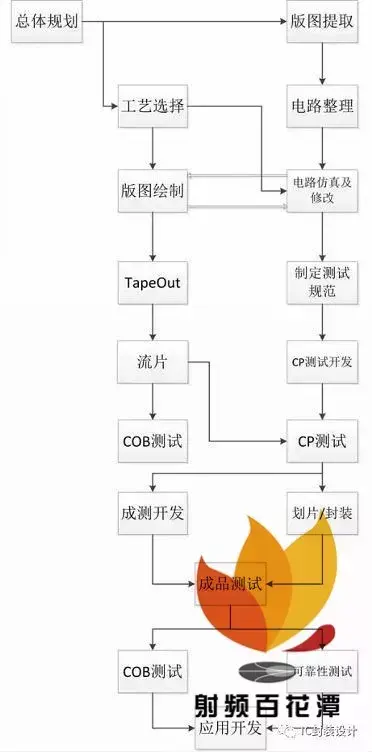 在CP测试完了之后,裸芯就可以送到成测厂进行划片和封装了,在这期间,IC设计师所要做的工作就是依据制定成品测试的规范并进行成品测试的开发。这部分的工作其实和CP测试的工作是类似的,只不过,相对于CP测试而言,成品测试的测试项会少很多。许多CP测试用到的测试项,比如,烧调之类的,成品测试就不会进行了,其余步骤均与CP测试一致。